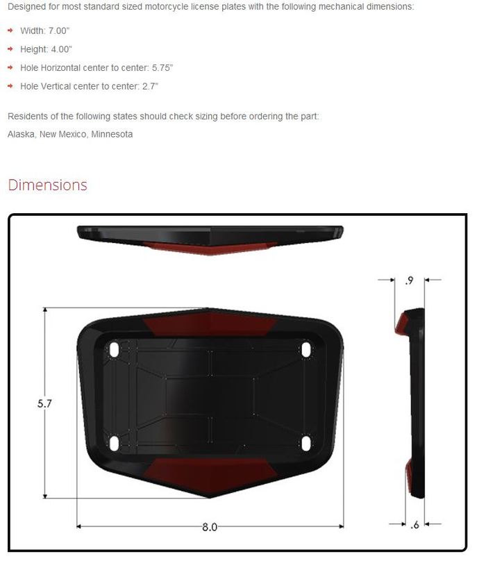 We planned for the fact most states have slightly different motorcycle license plate sizes. While we have accounted for 47 of the 50 states, residents of Alaska, New Mexico, and Minnesota should check the "Fit" dimensions below.